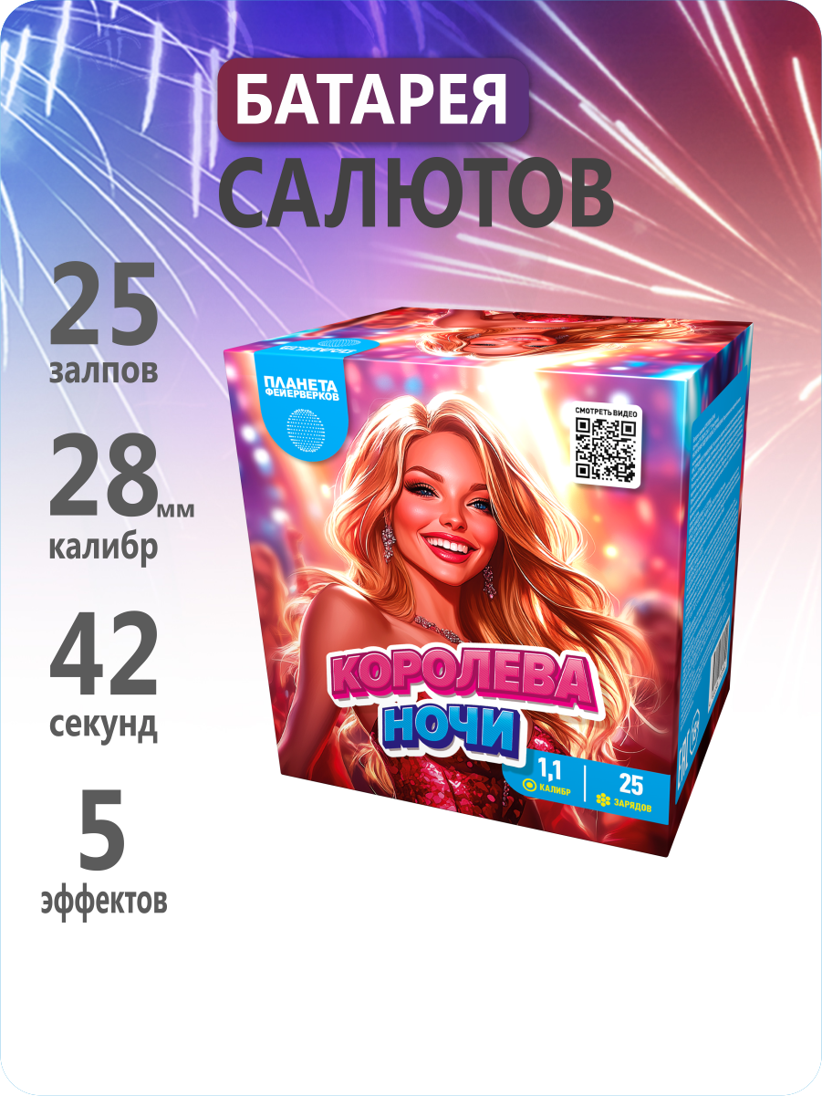 Салют красочный, 25 залпов , калибр 1,1" ;высота разрыва до 25м.